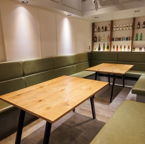 パーティーや二次会などの貸切利用も可能です!ご予算に合わせてプランをご提案いたします。グリーンの色味が居心地のよい、ゆったり落ち着いた空間。お一人様はもちろん、ソファ席は大人数でもご利用いただけます。